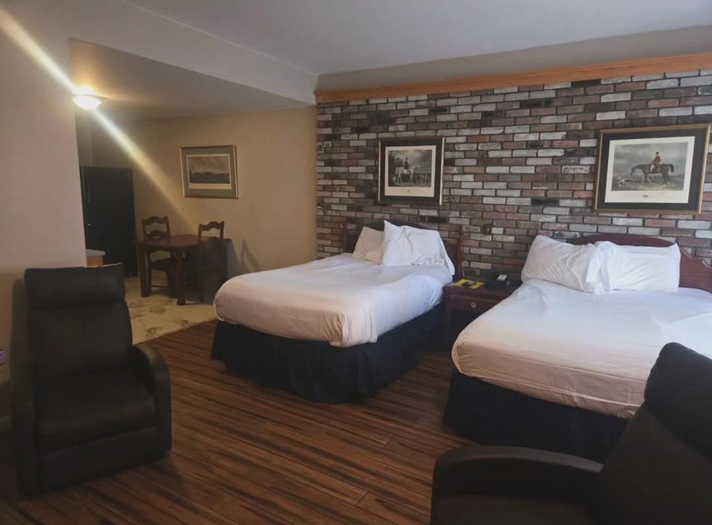 The Deluxe Double Rooms are known for their large size and unconfined layout. It includes a fully equipped kitchen area offers the ability to enjoy your complimentary coffee and tea service or a full meal. You will find a standard size refrigerator, cabinets and counter space, dishes utensils, microwave, and kitchen table and chairs. The bathroom features a full size bathtub and shower. Relax in the reclining chairs or outdoor rocking chairs. All rooms are nonsmoking.